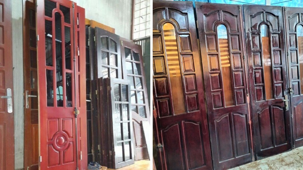 - Làm sạch và sửa chữa: Các bộ phận còn lại của cửa cũ sẽ được làm sạch và sửa chữa (nếu cần thiết) để đảm bảo chúng đạt được chất lượng và độ bền tốt nhất.
